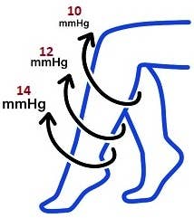 Gradient compression: 10-14 mmHg